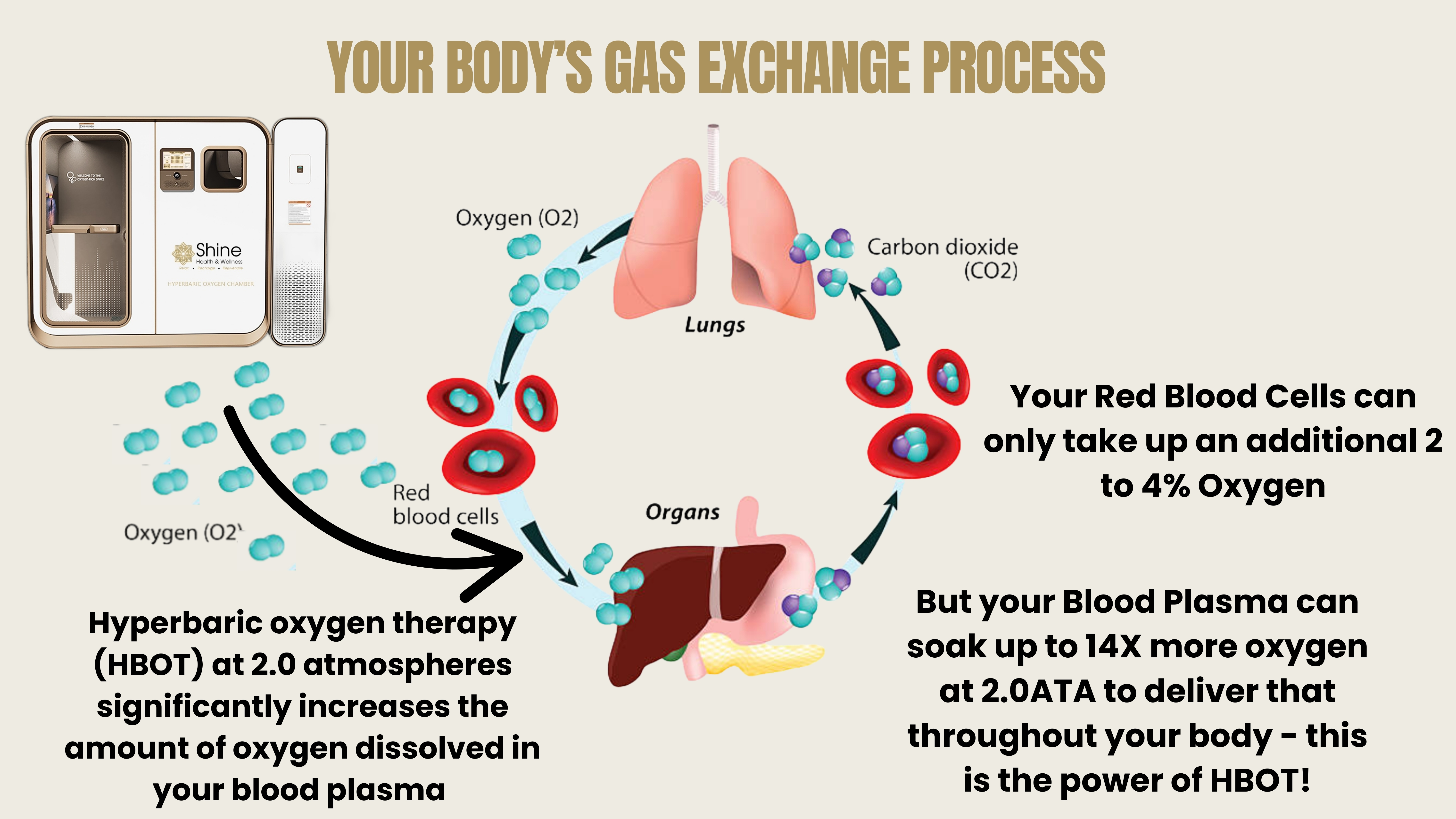 Shine’s 2.0 ATA hyperbaric chamber provides: